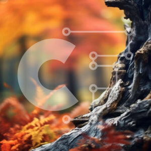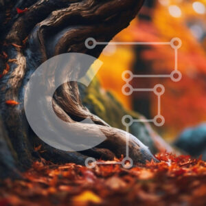 Intra Συλλεκτικό Ξύλινο Παζλ Plywood 4mm - Φθινοπωρινός κορμός δέντρου στο δάσος με διάσπαρτα φύλλα Σε Ξύλινο Κουτί - Διαστάσεις: 10x10 cm – 25 κομμάτια
