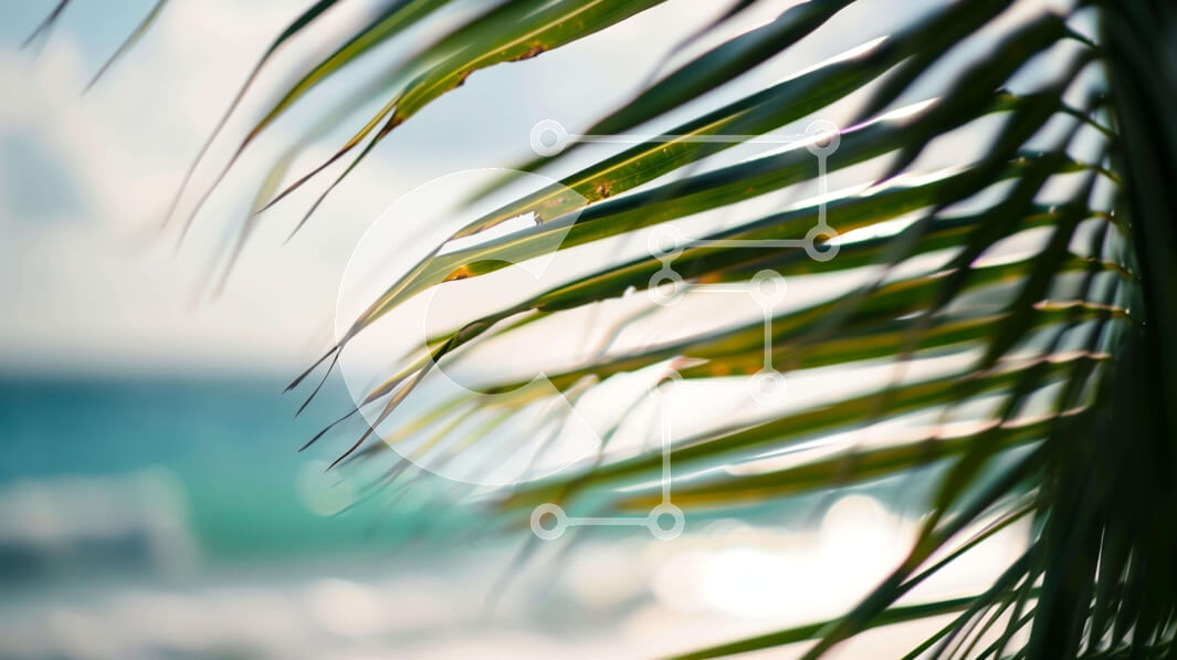 Intra Συλλεκτικό Ξύλινο Παζλ Plywood 4mm - Φύλλο φοίνικα με λαμπερή ηλιοφάνεια και μπλε ουρανό Σε Ξύλινο Κουτί - Διαστάσεις: 10x10 cm – 25 κομμάτια