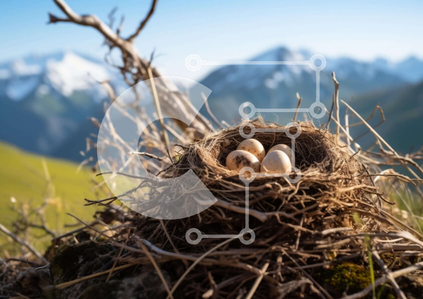 Intra Συλλεκτικό Ξύλινο Παζλ Plywood 4mm - Φωλιά πουλιών με αυγά και βουνά Σε Ξύλινο Κουτί - Διαστάσεις: 10x10 cm – 25 κομμάτια