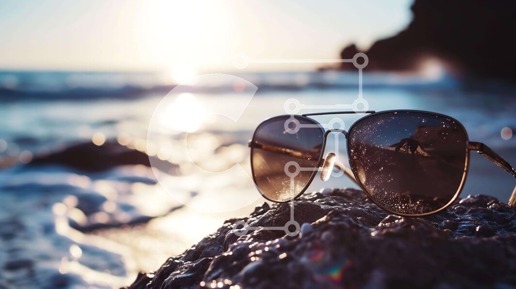 Intra Συλλεκτικό Ξύλινο Παζλ Plywood 4mm - Γυαλιά ηλίου στην παραλία με θέα στον ωκεανό Σε Ξύλινο Κουτί - Διαστάσεις: 10x10 cm – 25 κομμάτια
