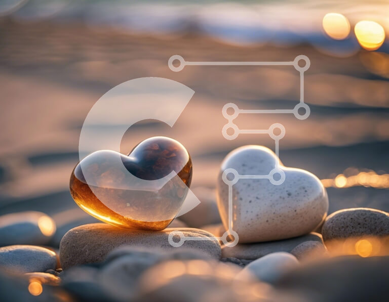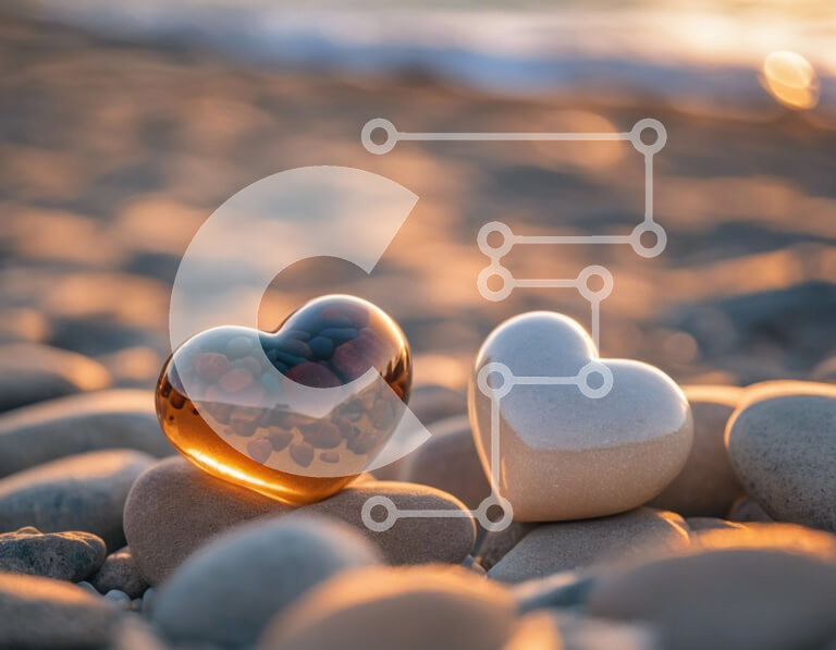 Intra Συλλεκτικό Ξύλινο Παζλ Plywood 4mm - Γυάλινα γλυπτά σε σχήμα καρδιάς στην παραλία Pebble Σε Ξύλινο Κουτί - Διαστάσεις: 10x10 cm – 25 κομμάτια