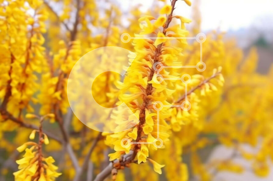 Intra Συλλεκτικό Ξύλινο Παζλ Plywood 4mm - Δέντρο με κίτρινα λουλούδια που ανθίζουν την άνοιξη Σε Ξύλινο Κουτί - Διαστάσεις: 10x10 cm – 25 κομμάτια