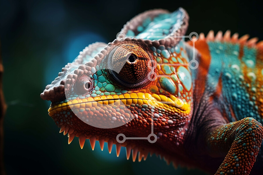 Intra Συλλεκτικό Ξύλινο Παζλ Plywood 4mm - Δονούμενη εικόνα ενός πολύχρωμου χαμαιλέοντα Σε Ξύλινο Κουτί - Διαστάσεις: 10x10 cm – 25 κομμάτια