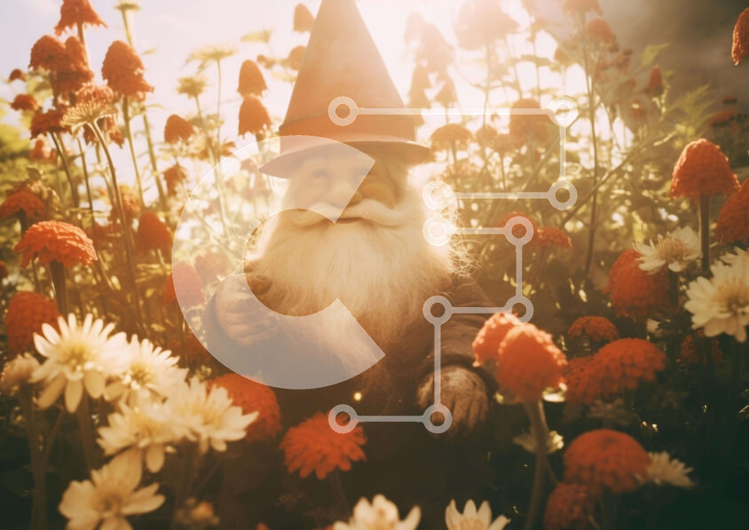 Intra Συλλεκτικό Ξύλινο Παζλ Plywood 4mm - Gnome ανάμεσα σε ανθισμένα λουλούδια Σε Ξύλινο Κουτί - Διαστάσεις: 10x10 cm – 25 κομμάτια