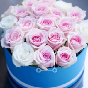 Intra Συλλεκτικό Ξύλινο Παζλ Plywood 4mm - Floral σύνθεση με ροζ και λευκά τριαντάφυλλα σε μπλε κουτί Σε Ξύλινο Κουτί - Διαστάσεις: 10x10 cm – 25 κομμάτια