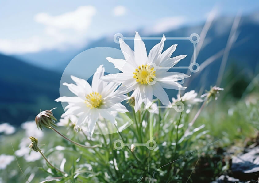 Intra Συλλεκτικό Ξύλινο Παζλ Plywood 4mm - Δύο λευκές μαργαρίτες σε ένα χορταριασμένο χωράφι με βουνά Σε Ξύλινο Κουτί - Διαστάσεις: 10x10 cm – 25 κομμάτια