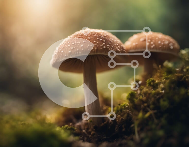 Intra Συλλεκτικό Ξύλινο Παζλ Plywood 4mm - Δύο μανιτάρια σε ένα ποώδη δασικό όροφο Σε Ξύλινο Κουτί - Διαστάσεις: 10x10 cm – 25 κομμάτια