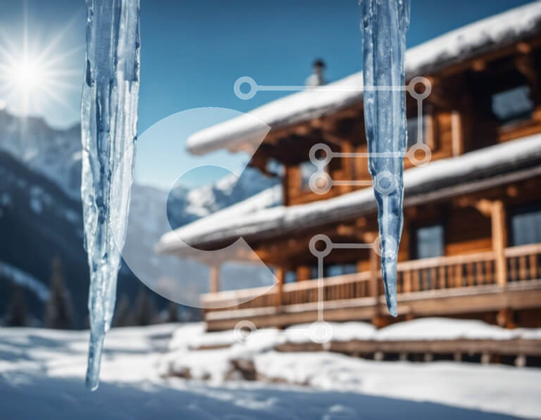 Intra Συλλεκτικό Ξύλινο Παζλ Plywood 4mm - Δύο παγάκια που κρέμονται από το ξύλινο σπίτι στο χιονισμένο τοπίο Σε Ξύλινο Κουτί - Διαστάσεις: 10x10 cm – 25 κομμάτια