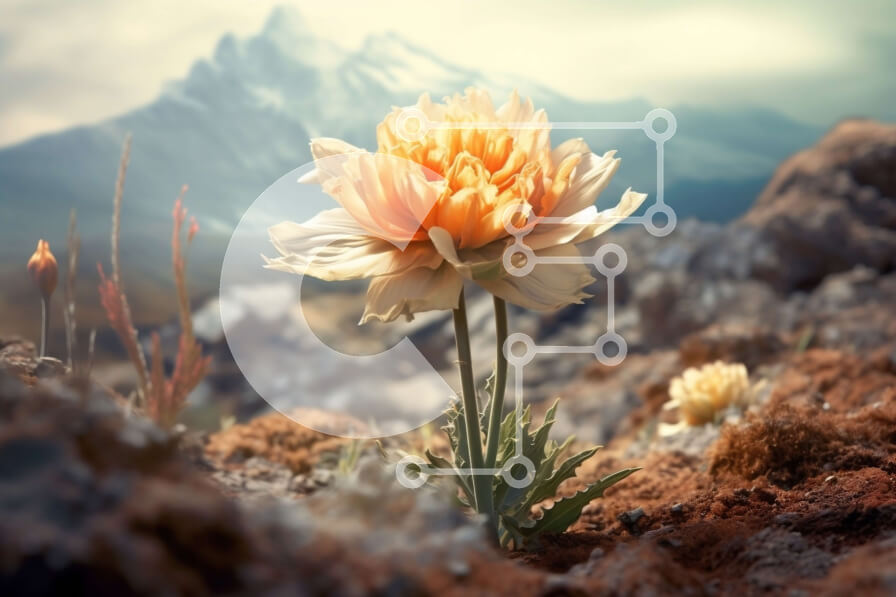 Intra Συλλεκτικό Ξύλινο Παζλ Plywood 4mm - Εκπληκτική εικόνα ενός ενιαίου πορτοκαλί λουλουδιού σε μια βραχώδη πλαγιά με βουνά στο φόντο Σε Ξύλινο Κουτί - Διαστάσεις: 10x10 cm – 25 κομμάτια