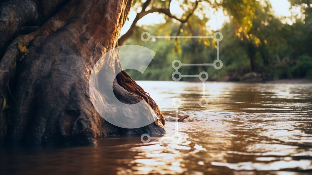 Intra Συλλεκτικό Ξύλινο Παζλ Plywood 4mm - Εκπληκτική εικόνα ενός δέντρου με βυθισμένες ρίζες σε ένα ποτάμι στο ηλιοβασίλεμα Σε Ξύλινο Κουτί - Διαστάσεις: 10x10 cm – 25 κομμάτια