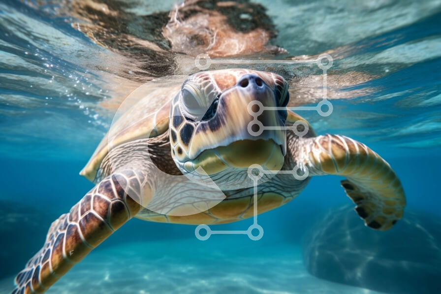Intra Συλλεκτικό Ξύλινο Παζλ Plywood 4mm - Εκπληκτική φωτογραφία θαλάσσιας χελώνας σε καταγάλανα νερά με φόντο βράχου Σε Ξύλινο Κουτί - Διαστάσεις: 10x10 cm – 25 κομμάτια