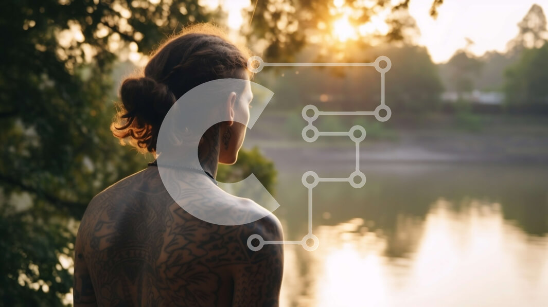 Intra Συλλεκτικό Ξύλινο Παζλ Plywood 4mm - Εκπληκτική φωτογραφία ηλιοβασιλέματος μιας γυναίκας με τατουάζ δίπλα στη λίμνη Σε Ξύλινο Κουτί - Διαστάσεις: 10x10 cm – 25 κομμάτια