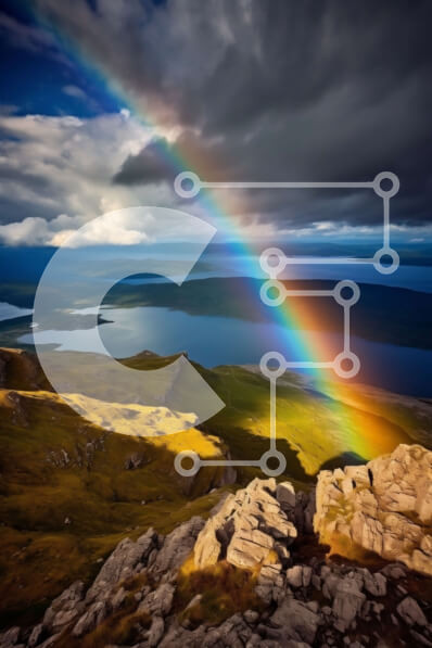 Intra Συλλεκτικό Ξύλινο Παζλ Plywood 4mm - Εκπληκτική φωτογραφία ενός ουράνιου τόξου πάνω από μια οροσειρά με μια λίμνη στο φόντο Σε Ξύλινο Κουτί - Διαστάσεις: 10x10 cm – 25 κομμάτια