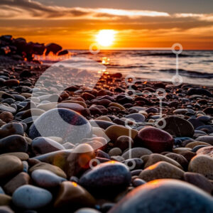 Intra Συλλεκτικό Ξύλινο Παζλ Plywood 4mm - Εκπληκτικό ηλιοβασίλεμα πάνω από τον ωκεανό με βράχους και βότσαλα στην παραλία Σε Ξύλινο Κουτί - Διαστάσεις: 10x10 cm – 25 κομμάτια