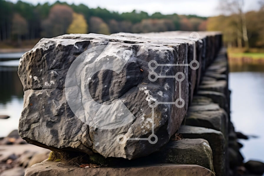 Intra Συλλεκτικό Ξύλινο Παζλ Plywood 4mm - Εκπληκτικό τοπίο ενός μεγάλου βράχου σε βραχώδες έδαφος με ορεινό φόντο Σε Ξύλινο Κουτί - Διαστάσεις: 10x10 cm – 25 κομμάτια
