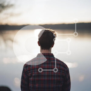 Intra Συλλεκτικό Ξύλινο Παζλ Plywood 4mm - Ένας νεαρός άνδρας που αντανακλάται δίπλα στη λίμνη στο ηλιοβασίλεμα Σε Ξύλινο Κουτί - Διαστάσεις: 10x10 cm – 25 κομμάτια