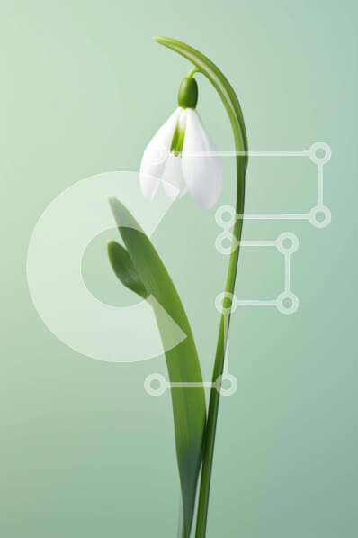 Intra Συλλεκτικό Ξύλινο Παζλ Plywood 4mm - Ενιαίο λουλούδι Snowdrop που ανθίζει σε αφηρημένο πράσινο φόντο Σε Ξύλινο Κουτί - Διαστάσεις: 10x10 cm – 25 κομμάτια