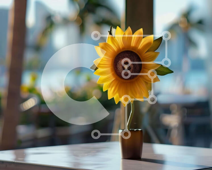 Intra Συλλεκτικό Ξύλινο Παζλ Plywood 4mm - Ενιαίος κίτρινος ηλίανθος σε τραπέζι εξωτερικού χώρου Σε Ξύλινο Κουτί - Διαστάσεις: 10x10 cm – 25 κομμάτια