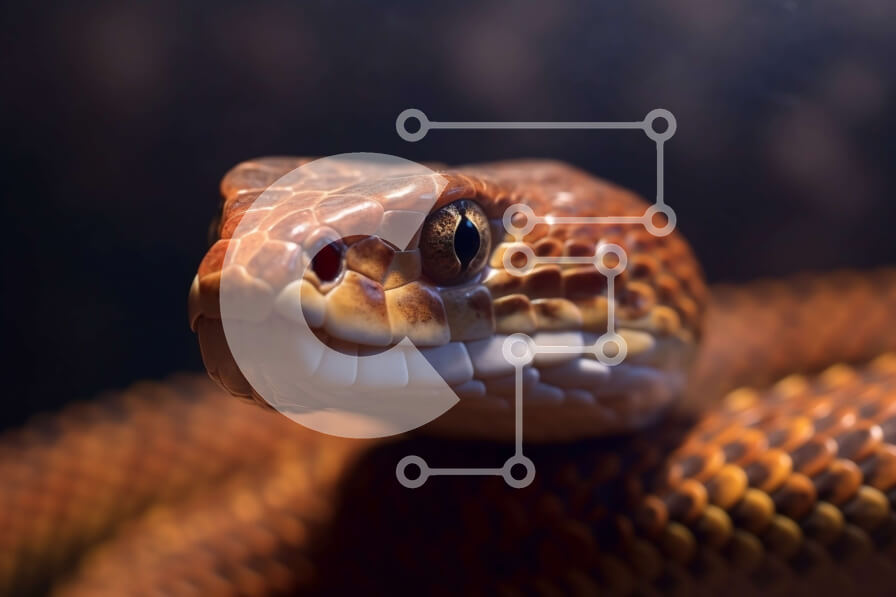 Intra Συλλεκτικό Ξύλινο Παζλ Plywood 4mm - Έντονη κινηματογράφηση σε πρώτο πλάνο του κεφαλιού του φιδιού με κυνόδοντες και μάτια Σε Ξύλινο Κουτί - Διαστάσεις: 10x10 cm – 25 κομμάτια
