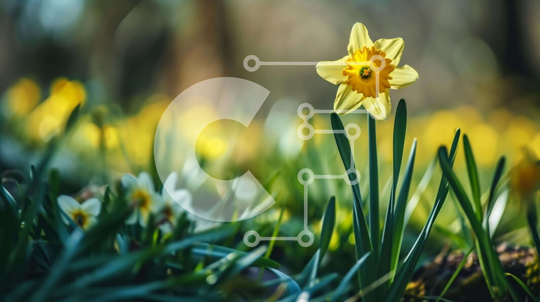 Intra Συλλεκτικό Ξύλινο Παζλ Plywood 4mm - Ενιαίος κίτρινος ασφόδελος σε πράσινο γρασίδι Σε Ξύλινο Κουτί - Διαστάσεις: 10x10 cm – 25 κομμάτια
