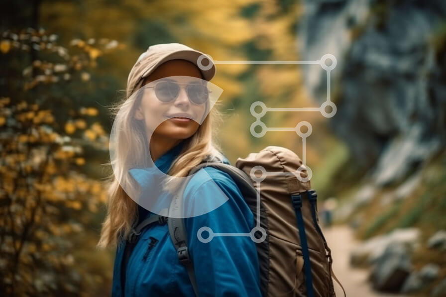Intra Συλλεκτικό Ξύλινο Παζλ Plywood 4mm - Ευτυχισμένη γυναίκα που κάνει πεζοπορία σε ένα γραφικό μονοπάτι στο δάσος Σε Ξύλινο Κουτί - Διαστάσεις: 10x10 cm – 25 κομμάτια
