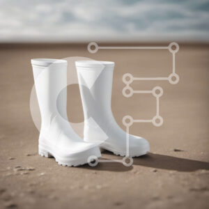 Intra Συλλεκτικό Ξύλινο Παζλ Plywood 4mm - Ζευγάρι λευκές λαστιχένιες μπότες στην αμμώδη παραλία Σε Ξύλινο Κουτί - Διαστάσεις: 10x10 cm – 25 κομμάτια