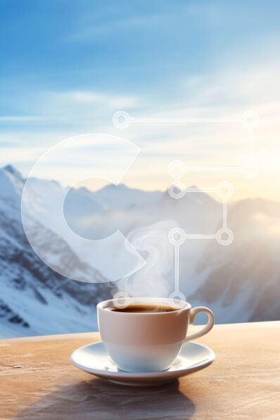 Intra Συλλεκτικό Ξύλινο Παζλ Plywood 4mm - Ζεστός καφές με χιονισμένα βουνά Σε Ξύλινο Κουτί - Διαστάσεις: 10x10 cm – 25 κομμάτια