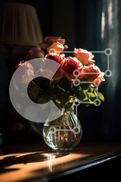 Intra Συλλεκτικό Ξύλινο Παζλ Plywood 4mm - Ζεστή και ρομαντική εικόνα με ροζ τριαντάφυλλα σε ένα βάζο σε ένα ξύλινο τραπέζι Σε Ξύλινο Κουτί - Διαστάσεις: 10x10 cm – 25 κομμάτια