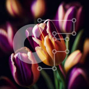 Intra Συλλεκτικό Ξύλινο Παζλ Plywood 4mm - Ζωντανές τουλίπες σε σκοτεινό φόντο Σε Ξύλινο Κουτί - Διαστάσεις: 10x10 cm – 25 κομμάτια