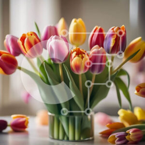 Intra Συλλεκτικό Ξύλινο Παζλ Plywood 4mm - Ζωντανή ανθοδέσμη τουλίπας με πράσινο - Φωτογραφία Αρχείου Σε Ξύλινο Κουτί - Διαστάσεις: 10x10 cm – 25 κομμάτια