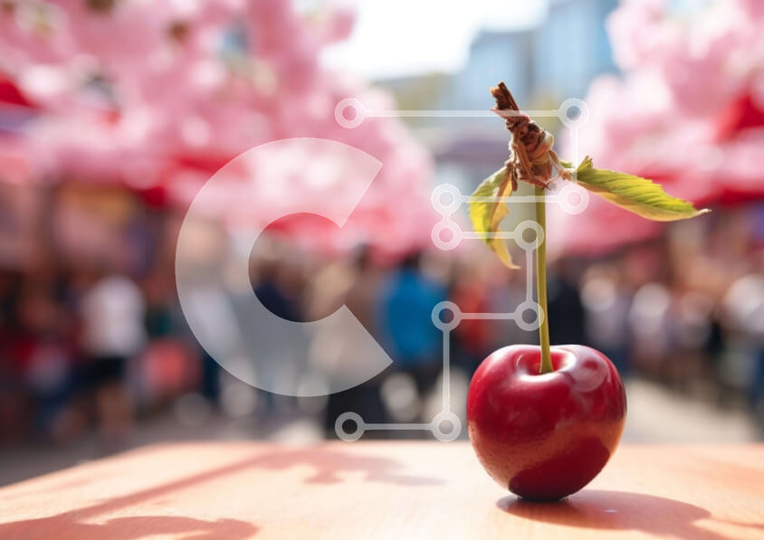 Intra Συλλεκτικό Ξύλινο Παζλ Plywood 4mm - Ζωντανό κόκκινο κεράσι σε εορταστικό περιβάλλον Σε Ξύλινο Κουτί - Διαστάσεις: 10x10 cm – 25 κομμάτια