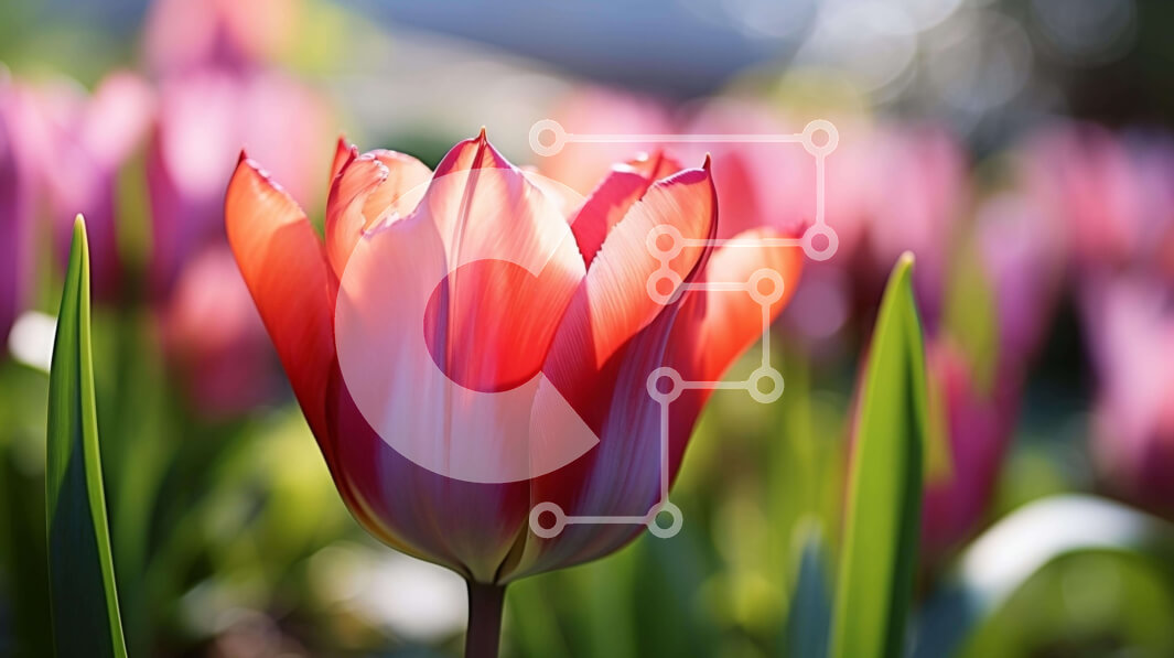 Intra Συλλεκτικό Ξύλινο Παζλ Plywood 4mm - Ζωντανό κόκκινο και ροζ λουλούδι τουλίπας σε πλούσια πράσινη βλάστηση Σε Ξύλινο Κουτί - Διαστάσεις: 10x10 cm – 25 κομμάτια