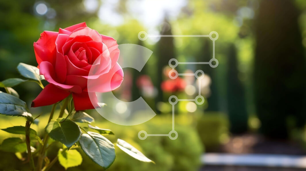 Intra Συλλεκτικό Ξύλινο Παζλ Plywood 4mm - Ζωντανό κόκκινο τριαντάφυλλο που ανθίζει σε καταπράσινο τοπίο Σε Ξύλινο Κουτί - Διαστάσεις: 10x10 cm – 25 κομμάτια