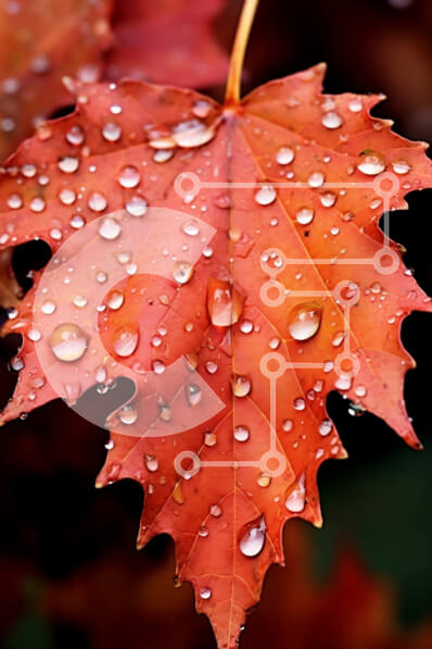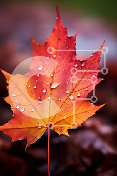 Intra Συλλεκτικό Ξύλινο Παζλ Plywood 4mm - Ζωντανό κόκκινο φύλλο σφενδάμου με σταγονίδια νερού Σε Ξύλινο Κουτί - Διαστάσεις: 10x10 cm – 25 κομμάτια