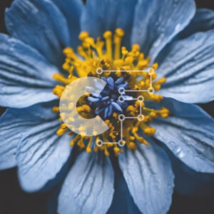 Intra Συλλεκτικό Ξύλινο Παζλ Plywood 4mm - Ζωντανό μπλε λουλούδι με κίτρινα κέντρα και σταγόνες νερού Σε Ξύλινο Κουτί - Διαστάσεις: 10x10 cm – 25 κομμάτια