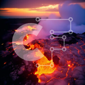 Intra Συλλεκτικό Ξύλινο Παζλ Plywood 4mm - Ζωντανό κοντινό πλάνο της λάβας που ρέει από το ηφαίστειο στο ηλιοβασίλεμα Σε Ξύλινο Κουτί - Διαστάσεις: 10x10 cm – 25 κομμάτια