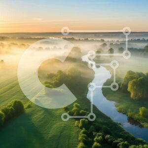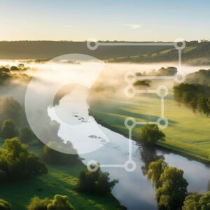 Intra Συλλεκτικό Ξύλινο Παζλ Plywood 4mm - Αεροφωτογραφία του Misty Green Field και του ποταμού Σε Ξύλινο Κουτί - Διαστάσεις: 10x10 cm – 25 κομμάτια