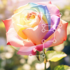 Intra Συλλεκτικό Ξύλινο Παζλ Plywood 4mm - Ζωντανό πολύχρωμο τριαντάφυλλο που ανθίζει σε έναν κήπο Σε Ξύλινο Κουτί - Διαστάσεις: 10x10 cm – 25 κομμάτια