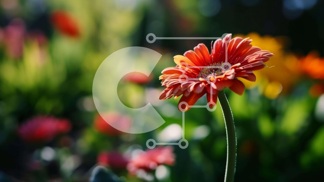 Intra Συλλεκτικό Ξύλινο Παζλ Plywood 4mm - Ζωντανό πορτοκαλί λουλούδι σε ένα χωράφι με πολύχρωμα λουλούδια Σε Ξύλινο Κουτί - Διαστάσεις: 10x10 cm – 25 κομμάτια