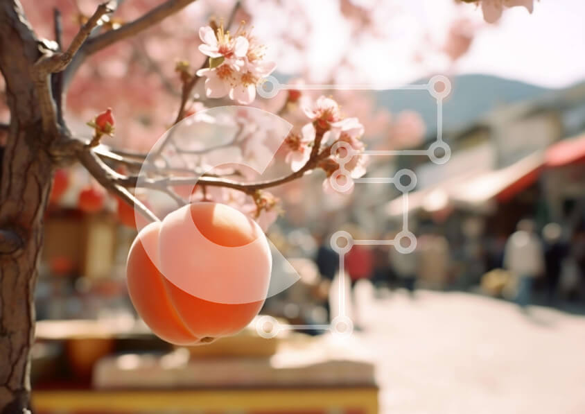 Intra Συλλεκτικό Ξύλινο Παζλ Plywood 4mm - Ζωντανό πορτοκαλί φρούτο σε κερασιά με ανθρώπους να περπατούν Σε Ξύλινο Κουτί - Διαστάσεις: 10x10 cm – 25 κομμάτια