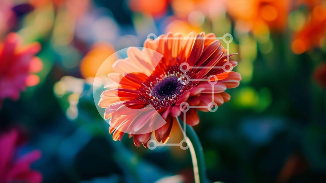 Intra Συλλεκτικό Ξύλινο Παζλ Plywood 4mm - Ζωντανό πορτοκαλί λουλούδι σε πολύχρωμο χωράφι Σε Ξύλινο Κουτί - Διαστάσεις: 10x10 cm – 25 κομμάτια