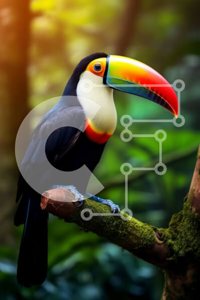 Intra Συλλεκτικό Ξύλινο Παζλ Plywood 4mm - Ζωντανό πουλί Toucan σε μια καταπράσινη ζούγκλα Σε Ξύλινο Κουτί - Διαστάσεις: 10x10 cm – 25 κομμάτια