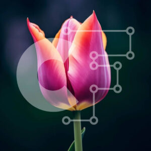 Intra Συλλεκτικό Ξύλινο Παζλ Plywood 4mm - Ζωντανό ροζ και κίτρινο λουλούδι τουλίπας σε άνθιση Σε Ξύλινο Κουτί - Διαστάσεις: 10x10 cm – 25 κομμάτια