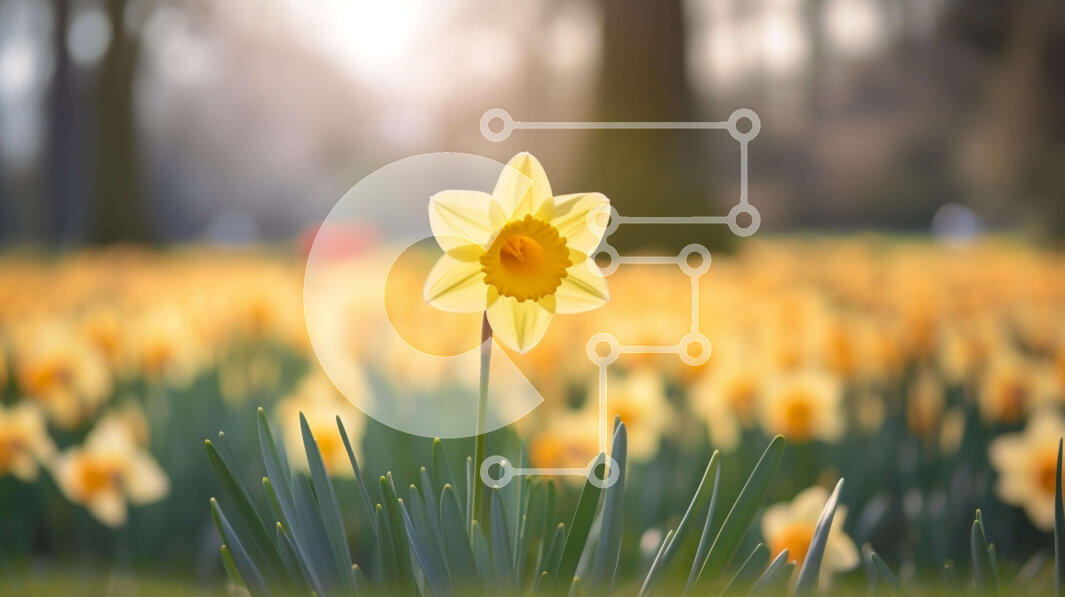 Intra Συλλεκτικό Ξύλινο Παζλ Plywood 4mm - Ζωντανοί κίτρινοι νάρκισσοι στον καταπράσινο κήπο της άνοιξης Σε Ξύλινο Κουτί - Διαστάσεις: 10x10 cm – 25 κομμάτια