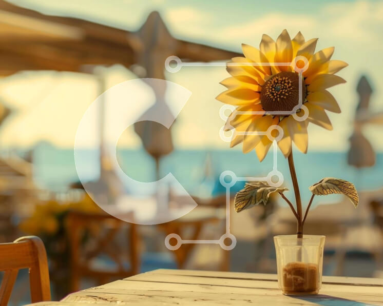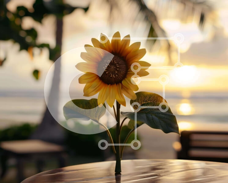 Intra Συλλεκτικό Ξύλινο Παζλ Plywood 4mm - Ηλίανθος στο παραθαλάσσιο τραπέζι Σε Ξύλινο Κουτί - Διαστάσεις: 10x10 cm – 25 κομμάτια