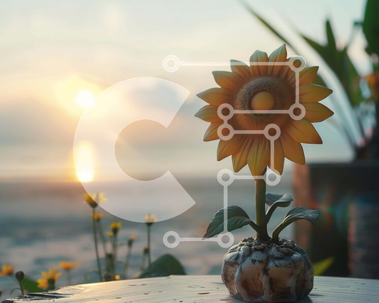 Intra Συλλεκτικό Ξύλινο Παζλ Plywood 4mm - Ηλίανθος στο υπαίθριο τραπέζι στο ηλιοβασίλεμα Σε Ξύλινο Κουτί - Διαστάσεις: 10x10 cm – 25 κομμάτια