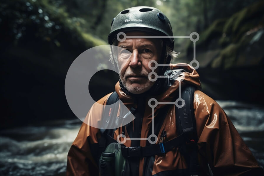 Intra Συλλεκτικό Ξύλινο Παζλ Plywood 4mm - Ηλικιωμένος άνδρας που απολαμβάνει τη φύση σε ένα ποτάμι με κίτρινο αδιάβροχο και σακίδιο Σε Ξύλινο Κουτί - Διαστάσεις: 10x10 cm – 25 κομμάτια