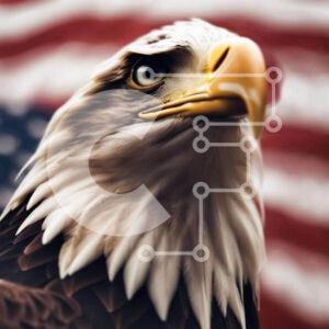 Intra Συλλεκτικό Ξύλινο Παζλ Plywood 4mm - Αετός που στέκεται μπροστά από την αμερικανική σημαία Σε Ξύλινο Κουτί - Διαστάσεις: 10x10 cm – 25 κομμάτια