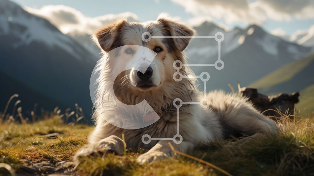 Intra Συλλεκτικό Ξύλινο Παζλ Plywood 4mm - Θλιβερός σκύλος μικτής φυλής σε έναν χορταριασμένο λόφο με βουνά στο φόντο Σε Ξύλινο Κουτί - Διαστάσεις: 10x10 cm – 25 κομμάτια