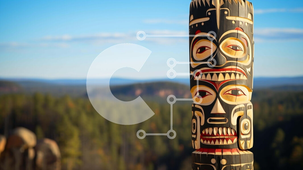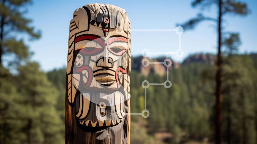 Intra Συλλεκτικό Ξύλινο Παζλ Plywood 4mm - Ιθαγενής Αμερικανός πόλος τοτέμ με φόντο το βουνό και το δάσος Σε Ξύλινο Κουτί - Διαστάσεις: 10x10 cm – 25 κομμάτια